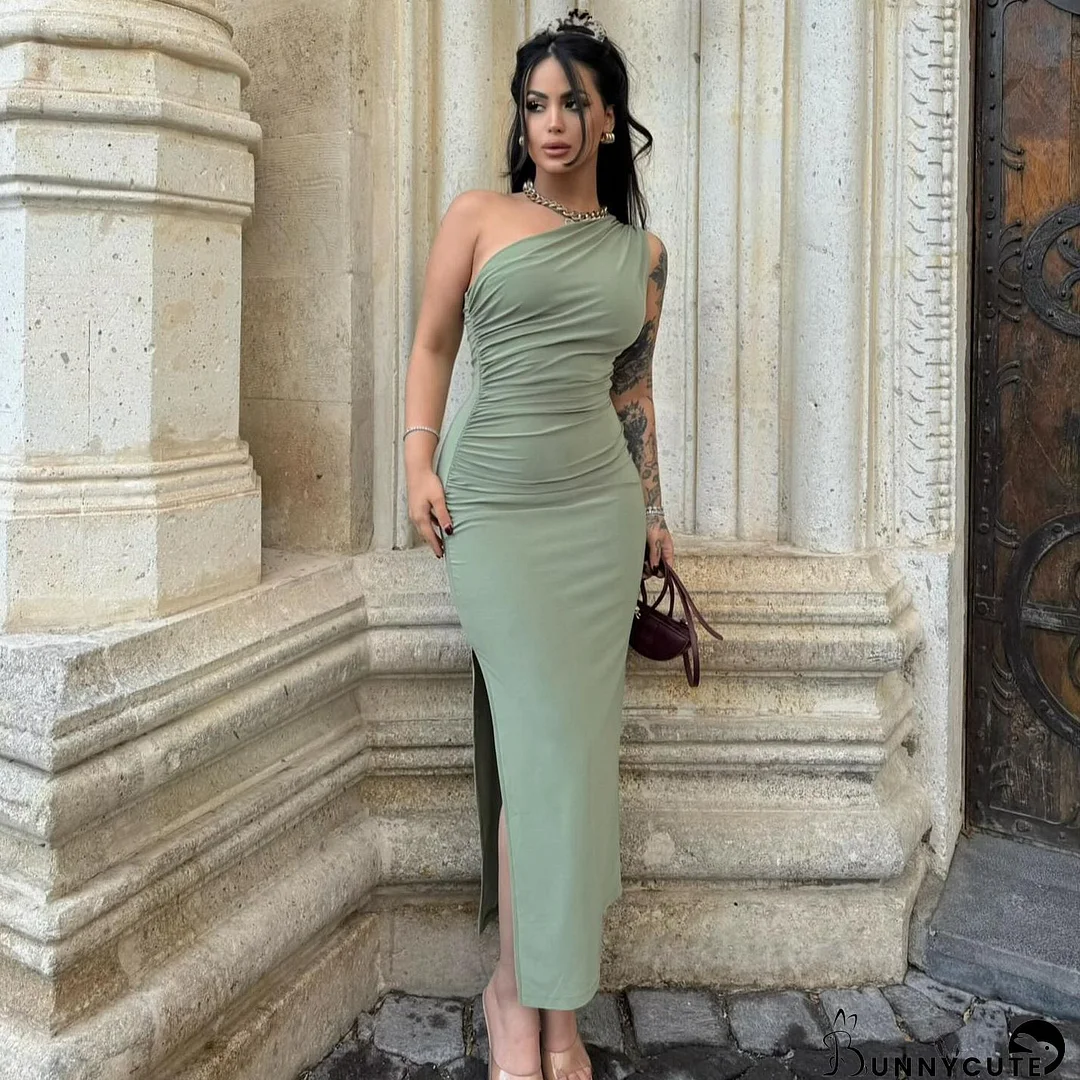 This elegant midi dress features long sleeves and a plain design, perfect for any formal occasion. Its sophisticated style pairs well with any accessories, making it a versatile addition to your wardrobe. Made with high-quality materials, this dress provides both style and comfort for a timeless and classy look.
