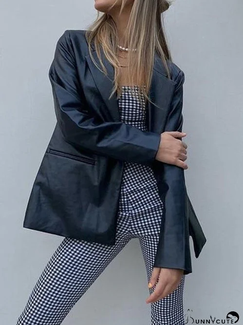 Blazers Fashionable Long Sleeve Leather Blazer for Women
