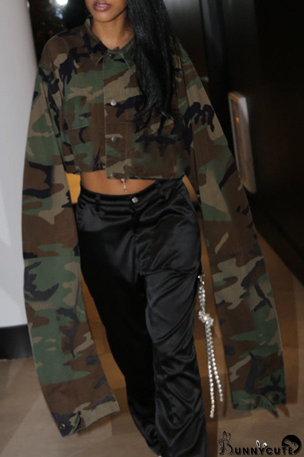 | Product Name | Camouflage Fashion Camouflage Print Patchwork Turndown Collar Tops |