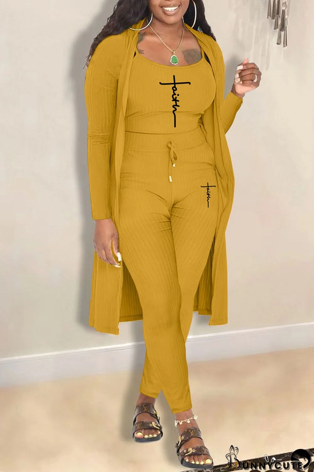 | Product Name | Yellow Casual Print Patchwork U Neck Long Sleeve Two Pieces |