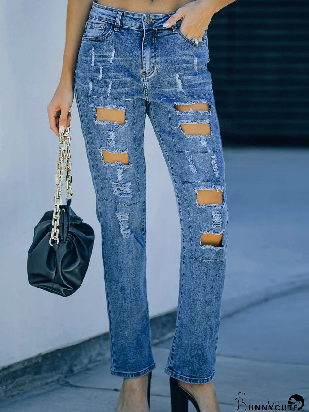 Picture yourself at an elegant cocktail party, where the ambiance is lively and sophisticated. You pair the distressed denim jeans with a sleek black blazer and a silk blouse. The buttoned pockets are not just functional; they add a touch of modernity to your ensemble. As you mingle with guests, the stylish distressed detailing catches the eye, making you stand out in the crowd. The jeans allow you to move comfortably while holding a glass of wine, making it easy to engage in conversation.