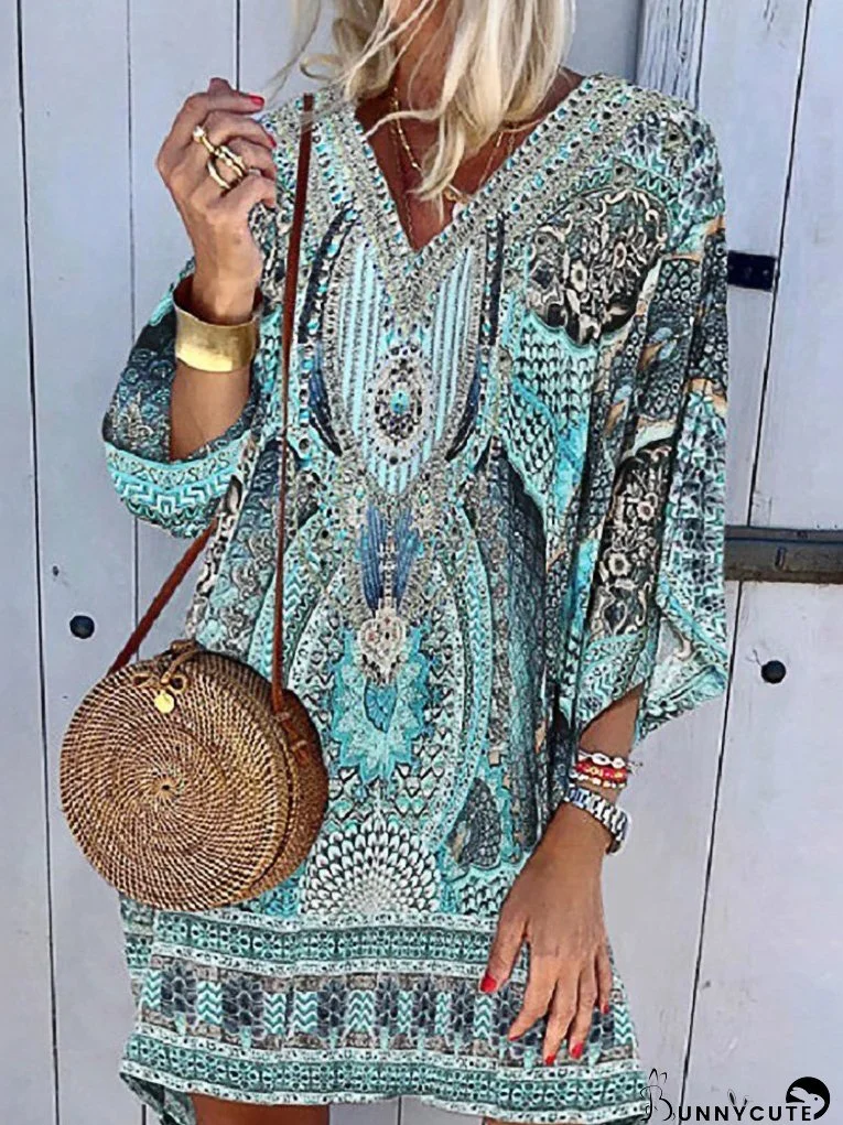Casual Bohemian Long Sleeve Printed Dress