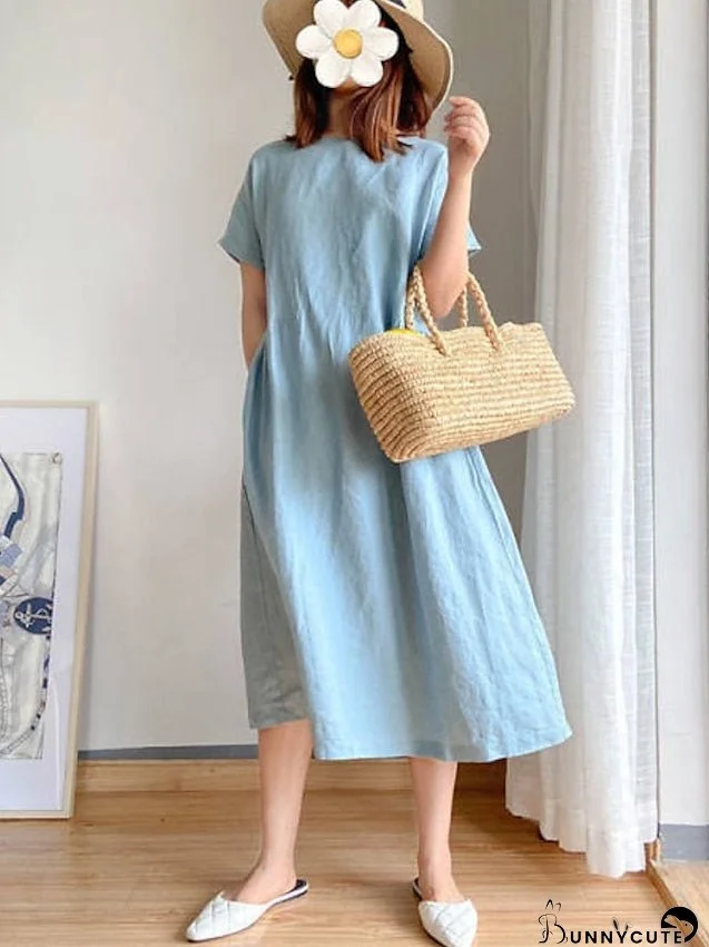1. Ideal for Spring and Summer seasons.2. Made with premium quality Linen fabric for better comfort and durability.3. Short sleeves offer a perfect blend of style and practicality.4. Elegant Midi Dress design for Women to enhance the fashion quotient.5. Perfect attire for any occasion, be it a day out or casual hangouts.