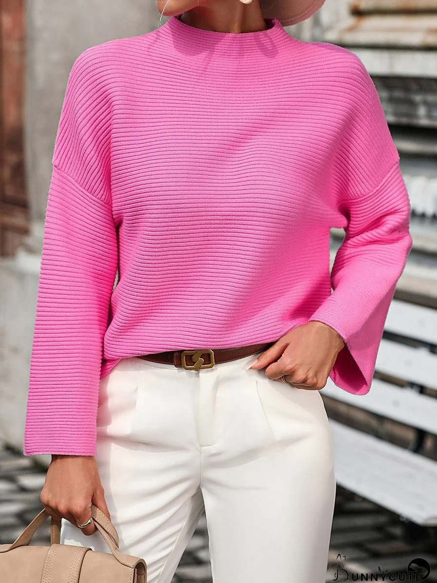 Walk the streets with confidence in this commuter style sweater. Featuring a loose fit, cropped sleeve, and solid color, this versatile and stylish knitted sweater is the perfect addition to any wardrobe.