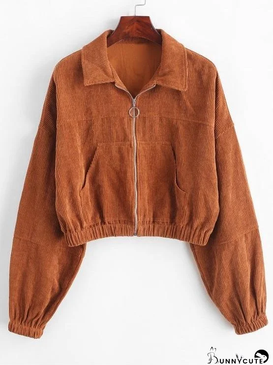 Corduroy Pocket Pull Ring Drop Shoulder Jacket
