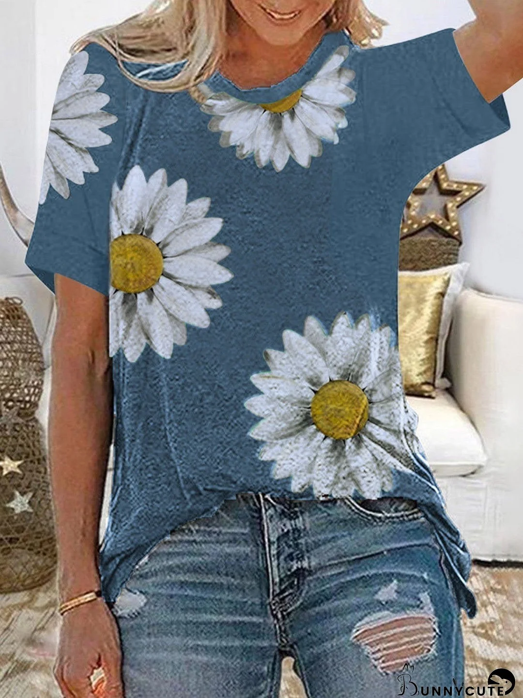Daisy Print Round Neck Short Sleeve T-Shirt