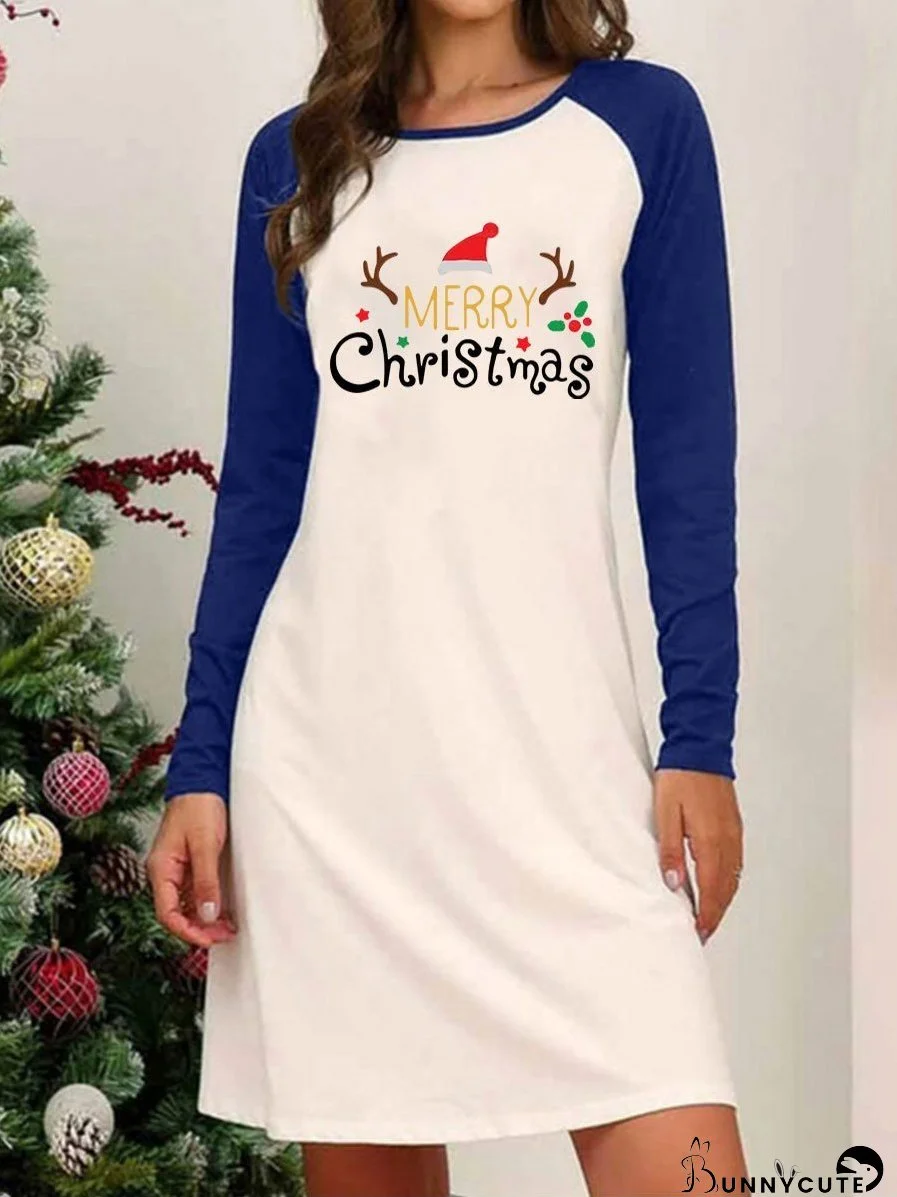 Dresses Christmas Print Round Neck Raglan Long Sleeve Dress for Women