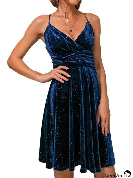 Dresses Glitter V-Neck Strap Gold Velvet Dress for Women