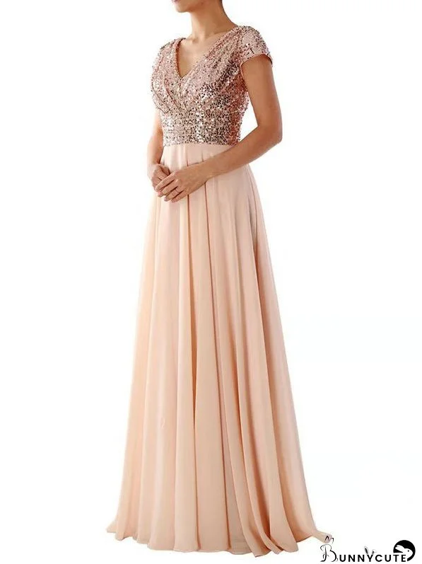 INS Exclusive! The INS Sequin Chiffon Panel Maxi Dress will have you dreaming of romantic evenings under starlit skies! Lightweight woven fabric drapes into short sleeves, surplice bodice and V-back. High waisted skirt falls to a maxi hem.