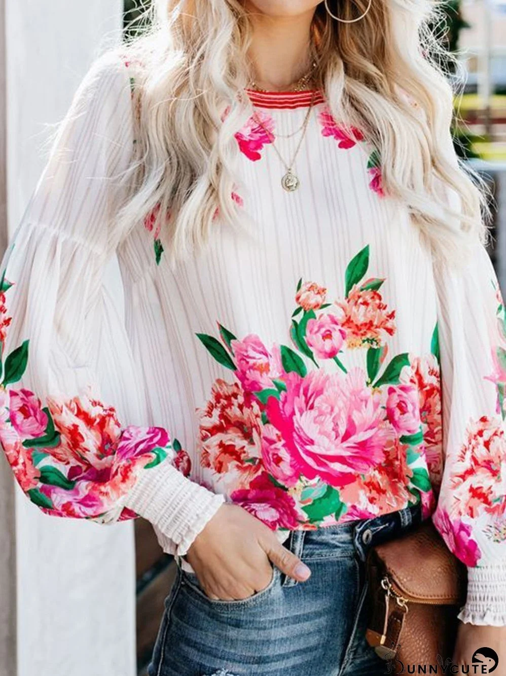 • Feature: Round Neck, Floral Print, Long Sleeve