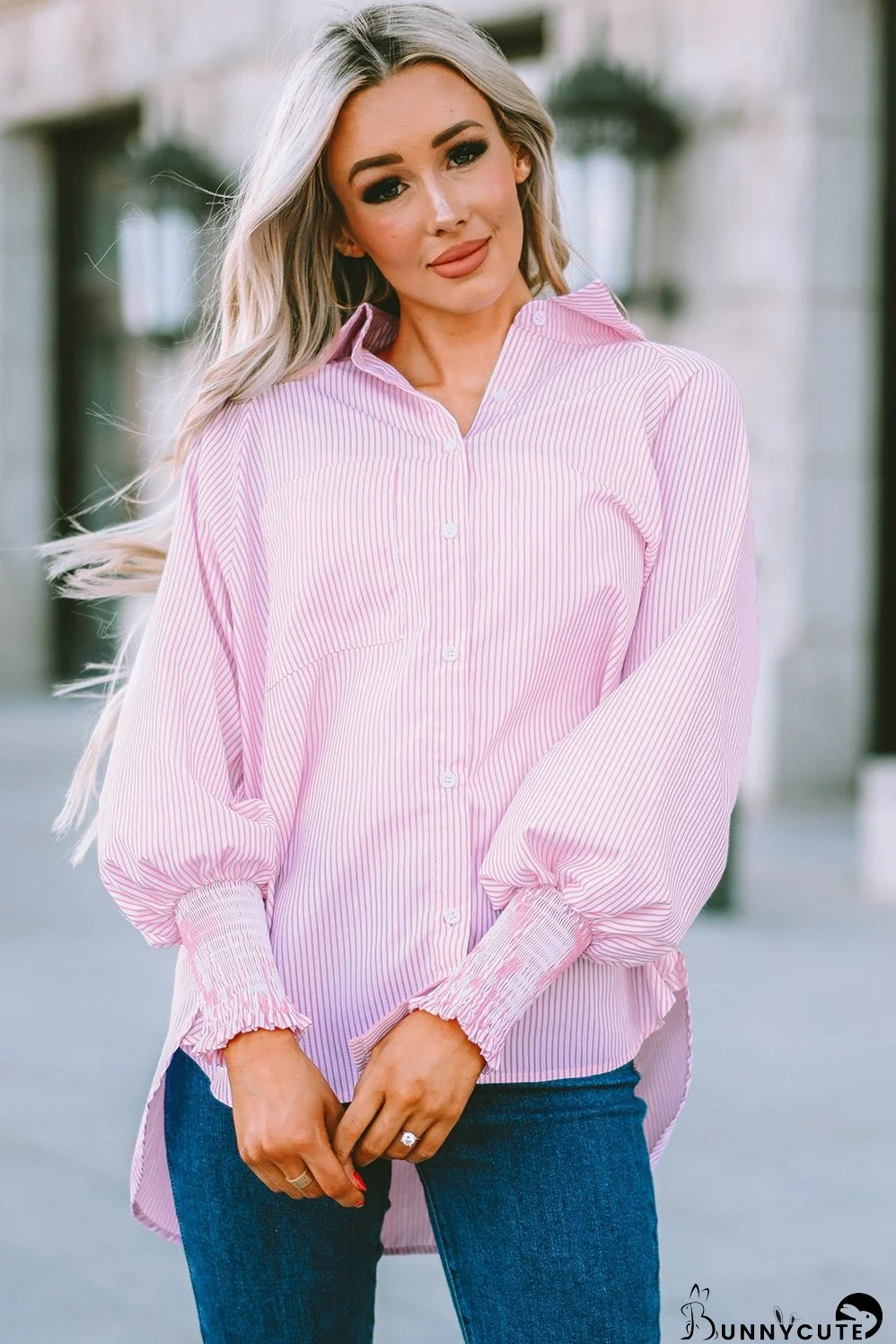 Elevate your style with our Simple Solid Lapel Button Long Sleeve Blouses! These versatile shirts feature a flattering silhouette, perfect for any occasion. Offered in chic pink stripes and crisp white, they boast comfortable long sleeves with stylish elastic cuffs. The classic button-down design and handy pockets add practicality and effortless charm. Upgrade your wardrobe today!