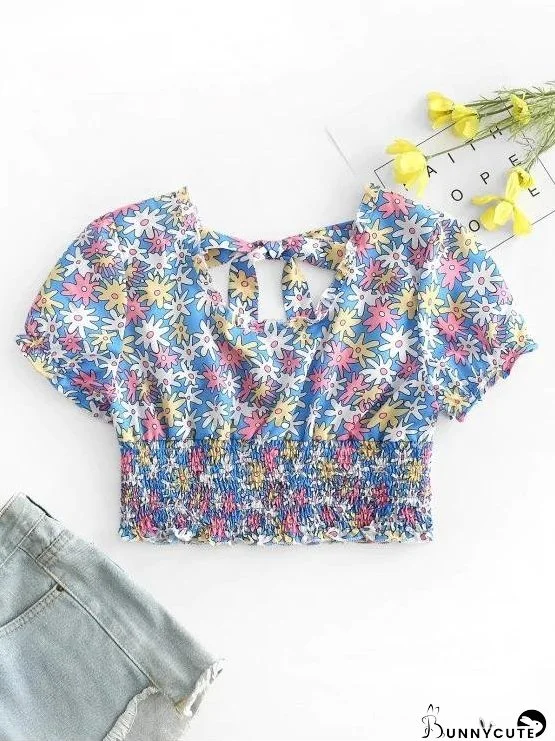 Floral Print Shirred Crop Top for Women