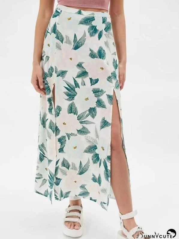 Floral Printed Casual A-Line Midi Summer Skirt