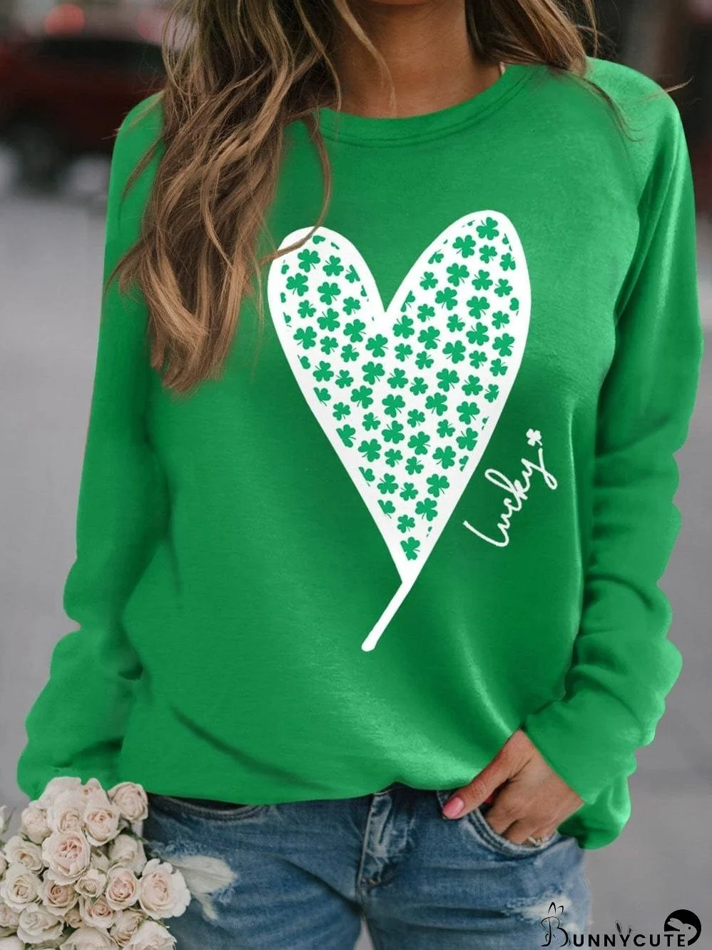 This fresh and pretty pullover sweatshirt featuring a playful four-leaf clover-filled heart graphic is designed to uplift your mood. The sweatshirt boasts long sleeves, a crew neck, and a loose cut, ensuring a comfortable wearing experience. Its versatile style pairs effortlessly with all types of bottoms, making it a wardrobe staple. Perfect for adding a trendy and relaxed vibe to your look, this sweatshirt is a must-have for any casual occasion.