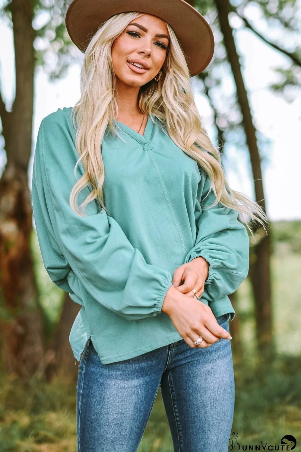 This Green Split V Neck Dolman Top is a must-have in your wardrobe. It features: