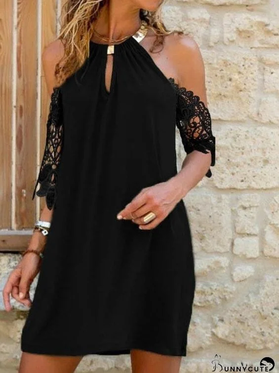 • Feature: Round Neck, Solid Color, Short Sleeve, Lace