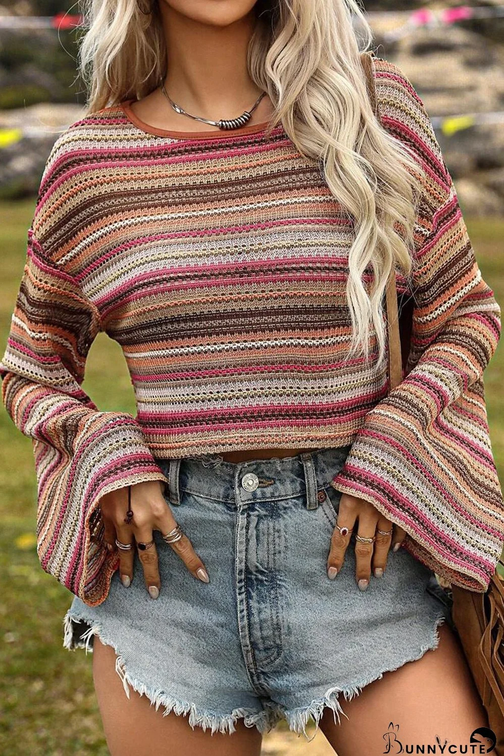 Elevate your style with our Casual Solid Chain Strap Cold Shoulder Long Sleeve T-Shirt! This versatile top features a chic cold-shoulder design and a flattering silhouette. The striped knit version offers a bohemian vibe with its earthy tones and bell sleeves, while the solid coral option provides a modern and effortlessly stylish look. Perfect for casual outings or dressed up with jeans or shorts. Shop now and add a touch of effortless cool to your wardrobe!