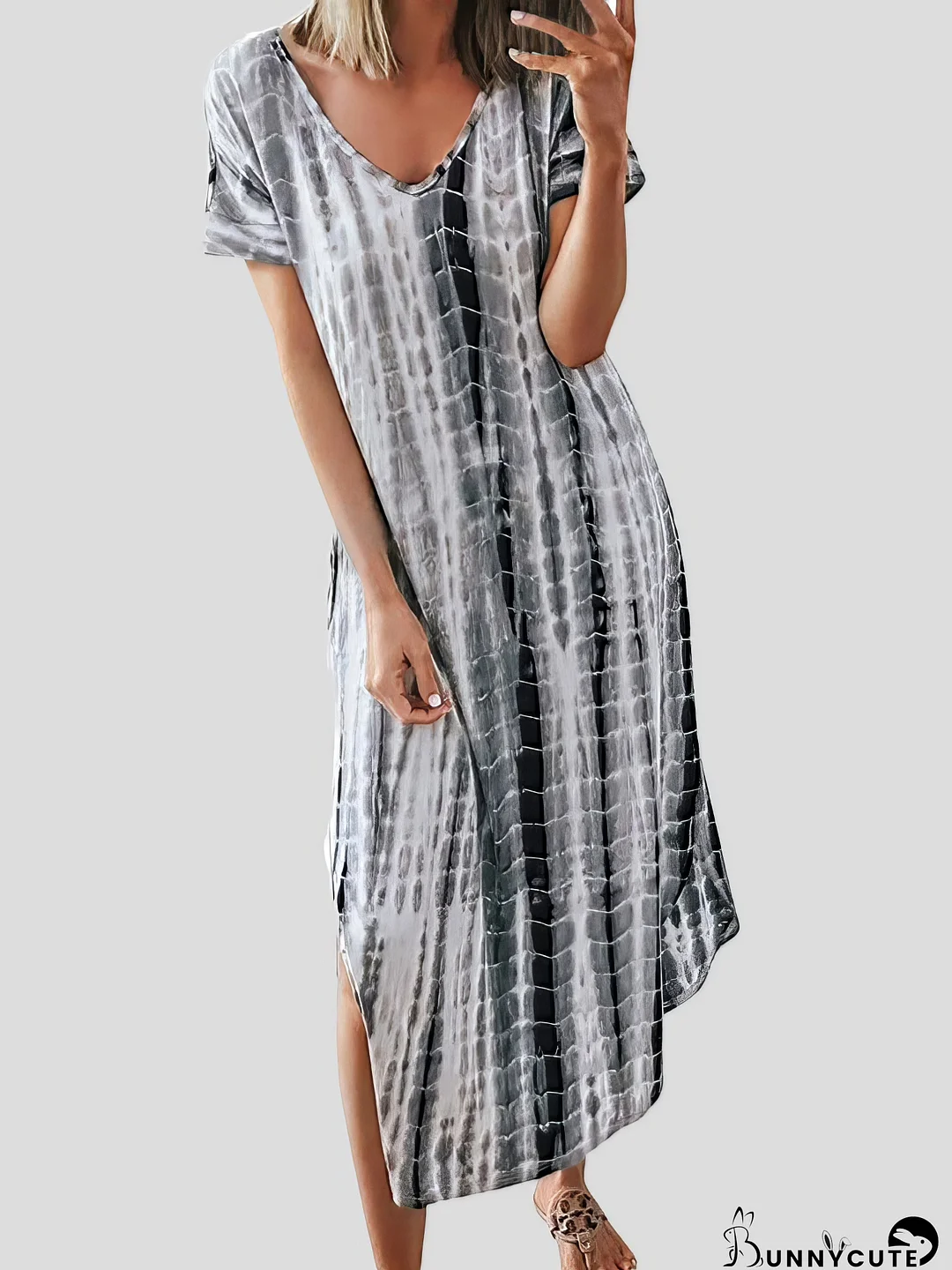 • Feature: Tie-Dye Print, V-Neck, Split