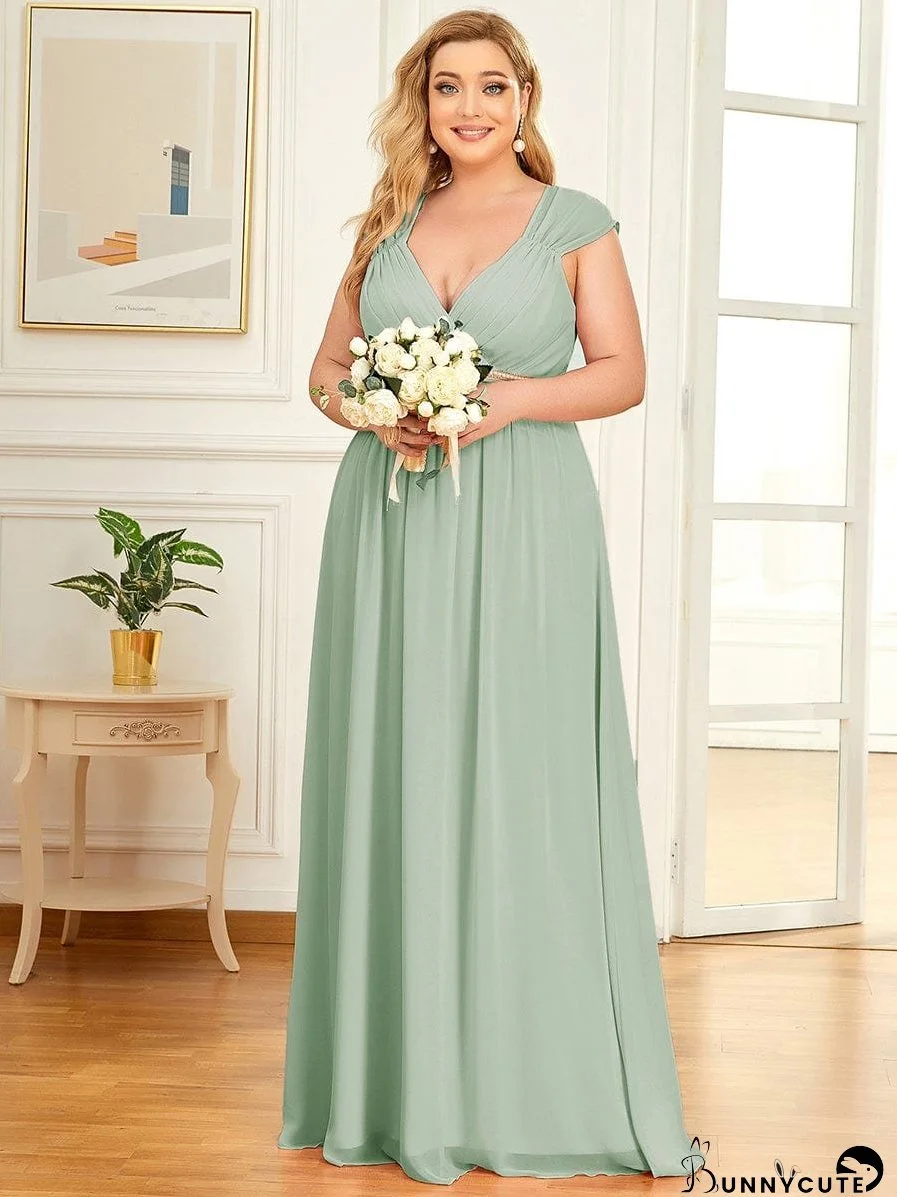 Make a statement in this elegant beaded V-neck chiffon A-line evening gown. The flowing sage green chiffon fabric creates a flattering silhouette, while the beaded waist accentuates your figure. The V-neck and keyhole back add a touch of sophistication. Perfect for any special occasion, this dress will elevate your style and make you feel confident and beautiful.