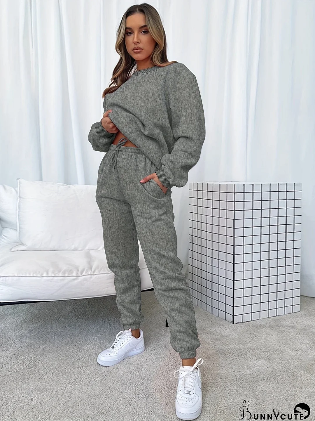Upgrade your style with this chic black two-piece set! Featuring a solid crew neck sweatshirt and drawstring jogger pants, this comfy yet stylish outfit is perfect for everyday wear. The soft material and flattering fit make it a wardrobe essential. Shop now!