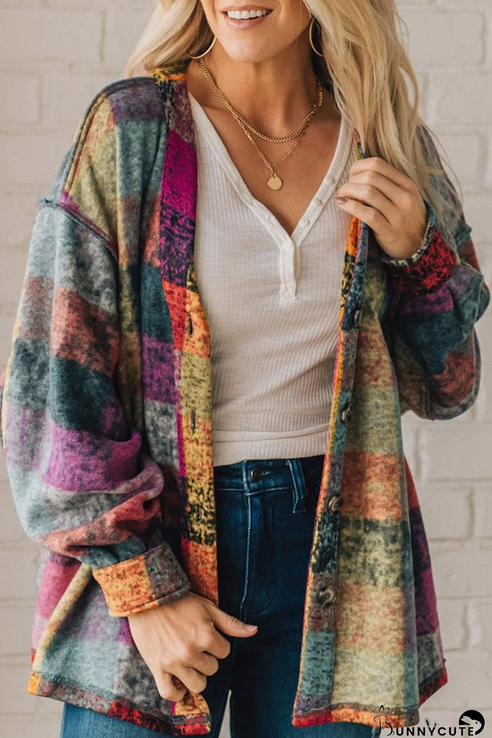 Whether you're heading out for a casual day with friends or enjoying a cozy evening, the Multicolor Brushed Checked Western Buttoned Jacket is your go-to choice for style and comfort. Don't miss out on this hot pick for the fall to winter season—add it to your wardrobe today!