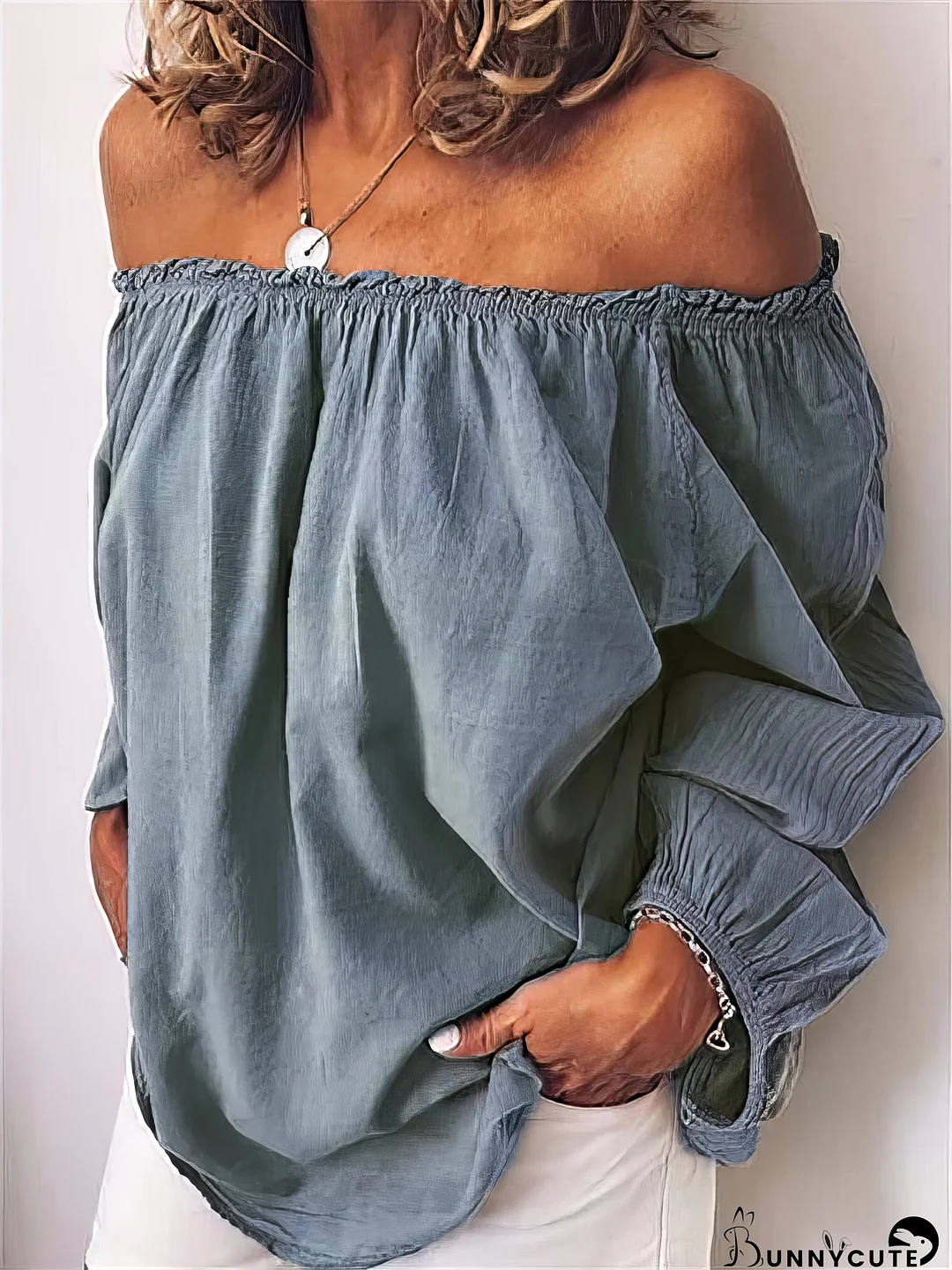 This Women's One-Shoulder T-Shirt combines practicality with style. It features a pleated long sleeve and an elastic neckline for a comfortable fit. Made from durable fabric, it's perfect for everyday casual wear.