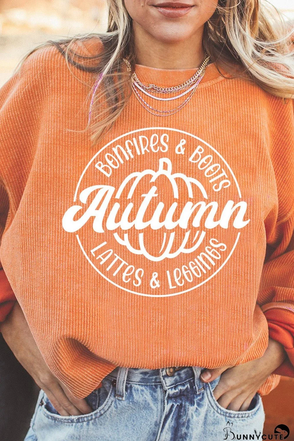 Introducing the perfect blend of style and comfort: the Orange Autumn Pumpkin Graphic Print Corded Oversized Sweatshirt. This sweatshirt is designed to elevate your fall wardrobe with its chic graphic print and cozy fabric.