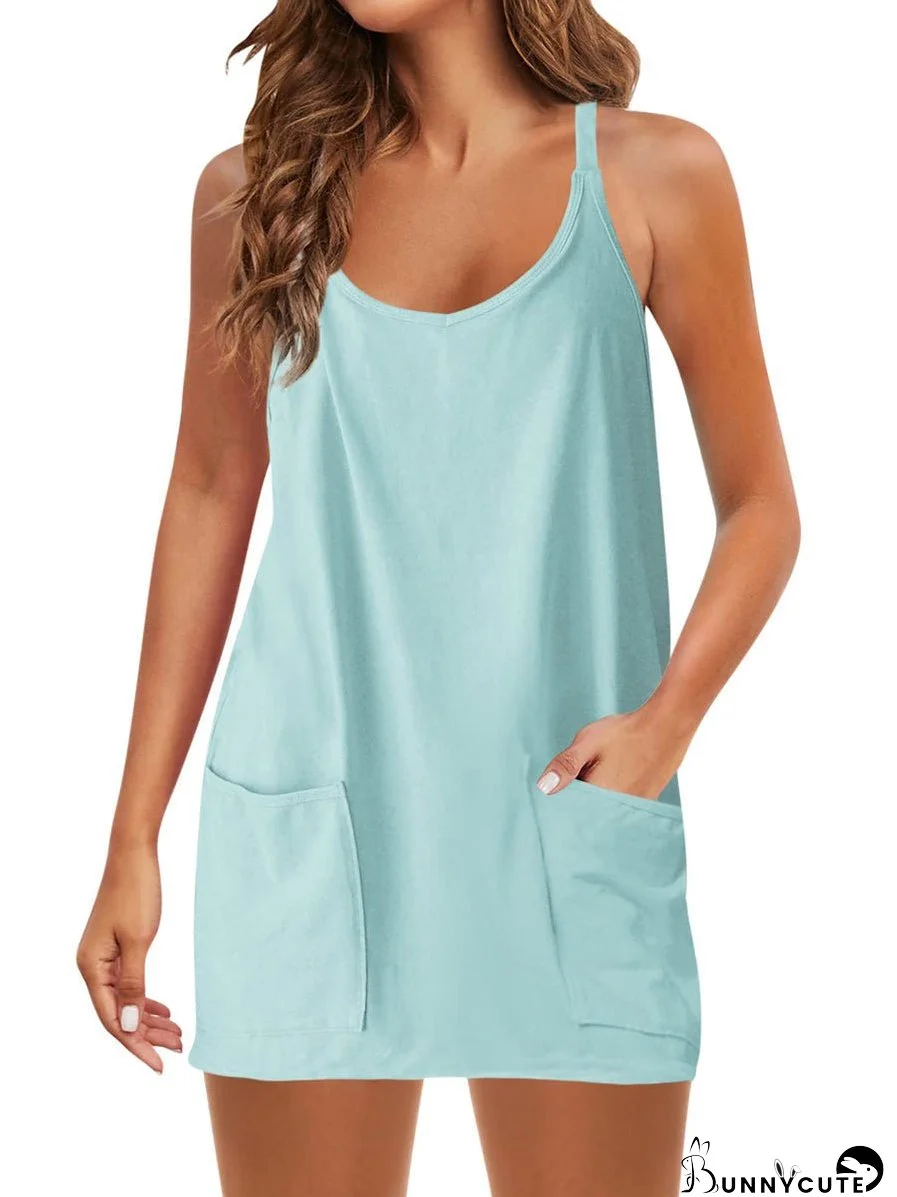 This versatile Spaghetti Strap Sundress Athletic V Neck Mini Dress provides comfortable coverage with a v-neck line, spaghetti straps, and an a-line shape. The relaxed fit creates a stylish look while the breathable fabric ensures you feel light and airy. Perfect for any occasion.