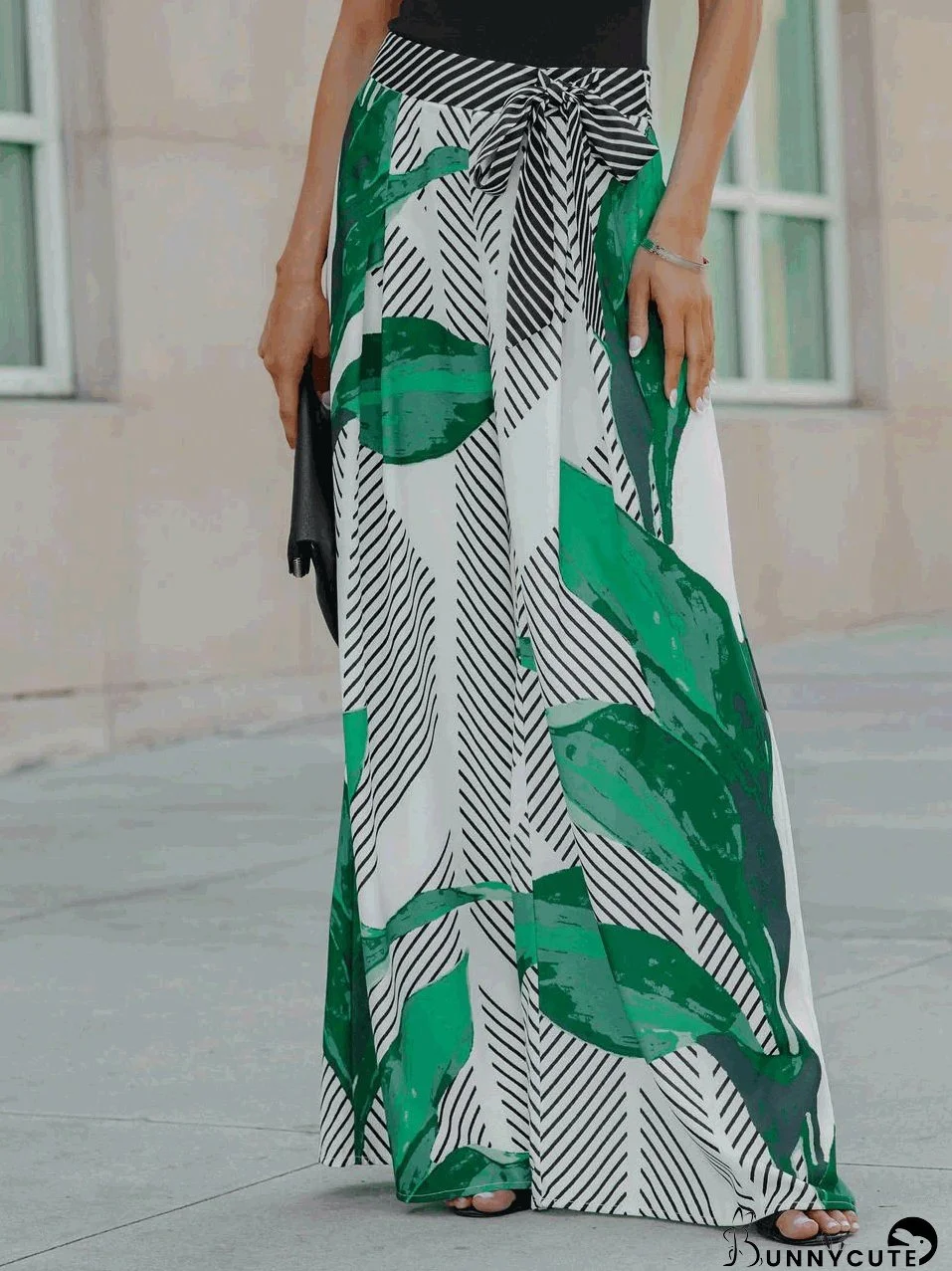 Pants Casual Print Leaf Tie Wide Leg Pants for Women