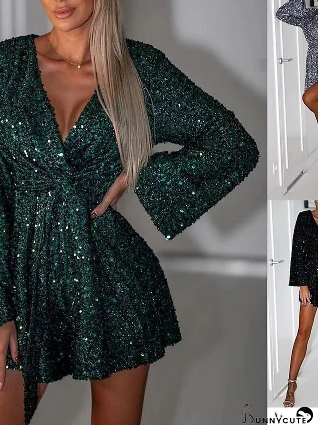 - Perfect for any occasion, be it a spring party, summer wedding or fall dress-up. - Long sleeves make it a chic choice for women.- Ideal for special evenings like an evening party, birthday or wedding guest.- A versatile piece that works as a winter, spring or fall dress.- It's a party dress that can be styled for both semi-formal and cocktail occasions.- A stunning green dress that dazzles with its sequin embellishments.- Sparkle and shimmer aplenty with this sequin dress that features a V-neckline and mini dress length. - Make heads turn with this semi-formal cocktail dress that exudes sophistication and style.