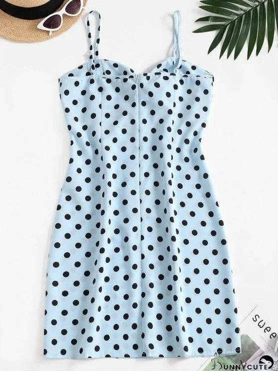 Polka Dot Knotted Slit Cami Summer Dress for Women