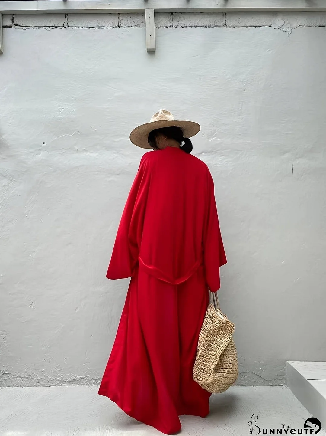 This vibrant red long sleeve swim robe is perfect for beach days or poolside lounging. Its loose, comfortable fit and maxi length create a flattering silhouette. The lightweight material makes it ideal for warm weather. Add a touch of effortless style to your summer wardrobe!
