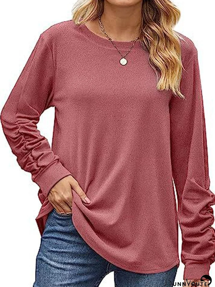 Whether you're heading out for a casual day or a special event, this Ruched Lightweight Crewneck Long Sleeve T-Shirt will keep you stylish and comfortable. Elevate your wardrobe with this versatile piece today!