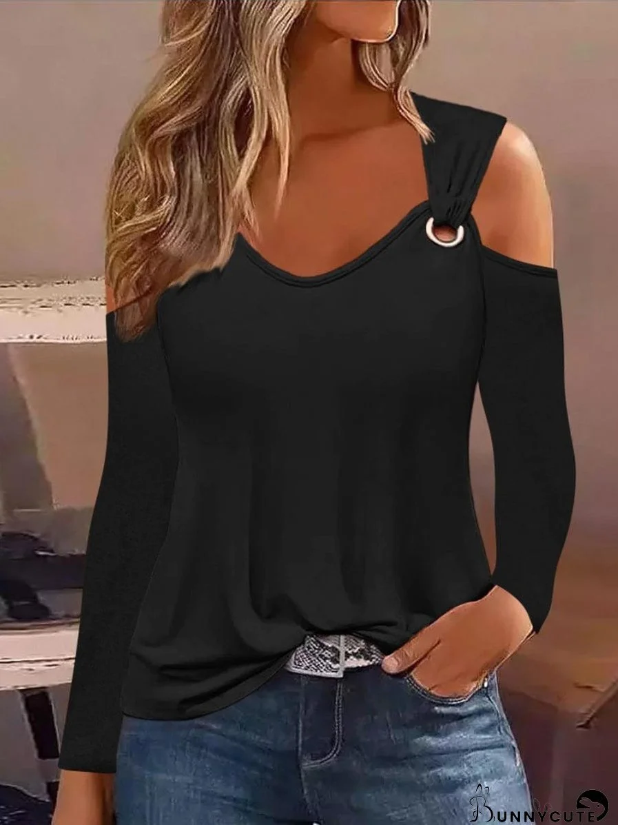 Simple Elegant Long Sleeve T-Shirt with Cold Shoulder Design