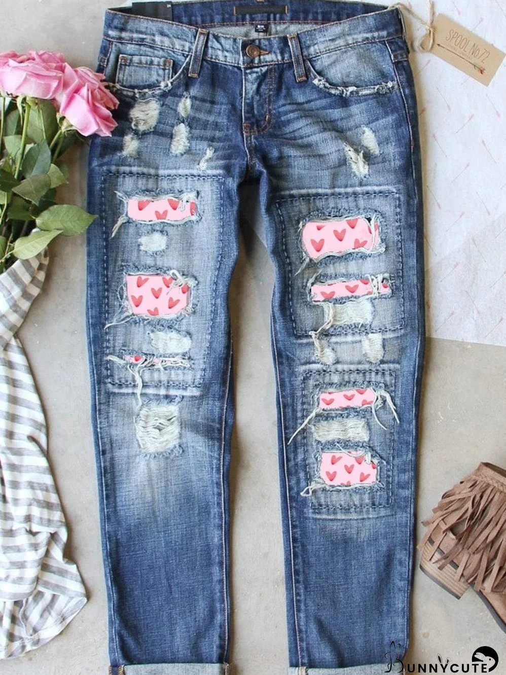 Whether you're looking for a unique Valentine's Day outfit or simply want to express your romantic side through fashion, these jeans are the perfect choice. Pair them with a casual top for a stylish yet effortless look.