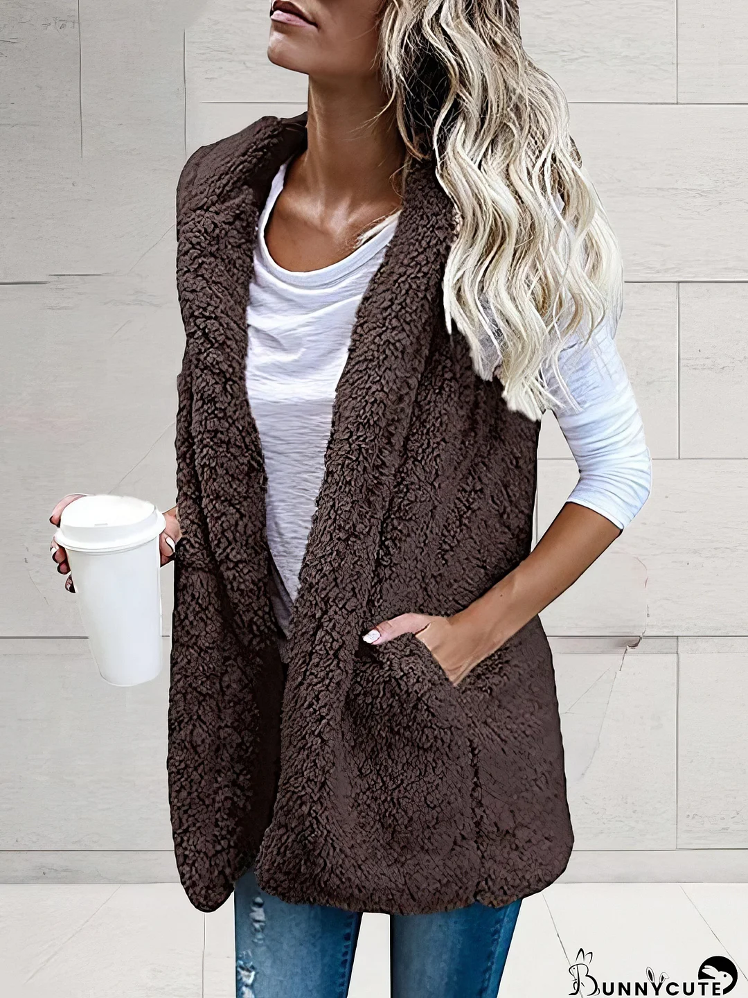 Stay cozy and stylish in this hooded sleeveless pocket fur vest! The plush black sherpa material is incredibly soft and warm, perfect for layering. Functional pockets and a relaxed fit add to its everyday appeal. Upgrade your wardrobe with effortless comfort and chic style.