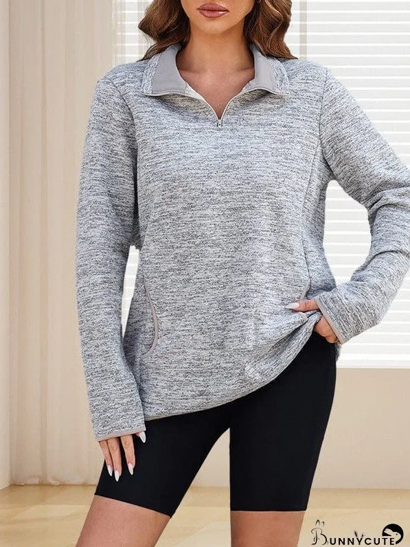 This Solid Color Long Sleeve Sweatshirt is a must-have for your casual wardrobe. Made from a comfortable grab wool blend with spandex, this sweatshirt offers a stylish zipper half placket and a trendy half open collar. The long sleeves and straight cut provide a flattering fit for all body types.