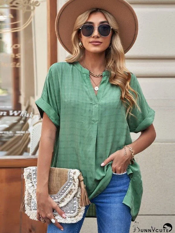 Elevate your wardrobe with our collection of solid color tops for women. Made from a comfortable cotton fabric, these thin V-neck pullover shirts offer a loose fit for ultimate ease and style. Whether you prefer long or short sleeves, this top is available in various sizes and colors to suit your preference. The contrasting color details add a trendy touch, making it a versatile piece for any occasion. Stay chic and comfy in our solid color loose shirts for women!