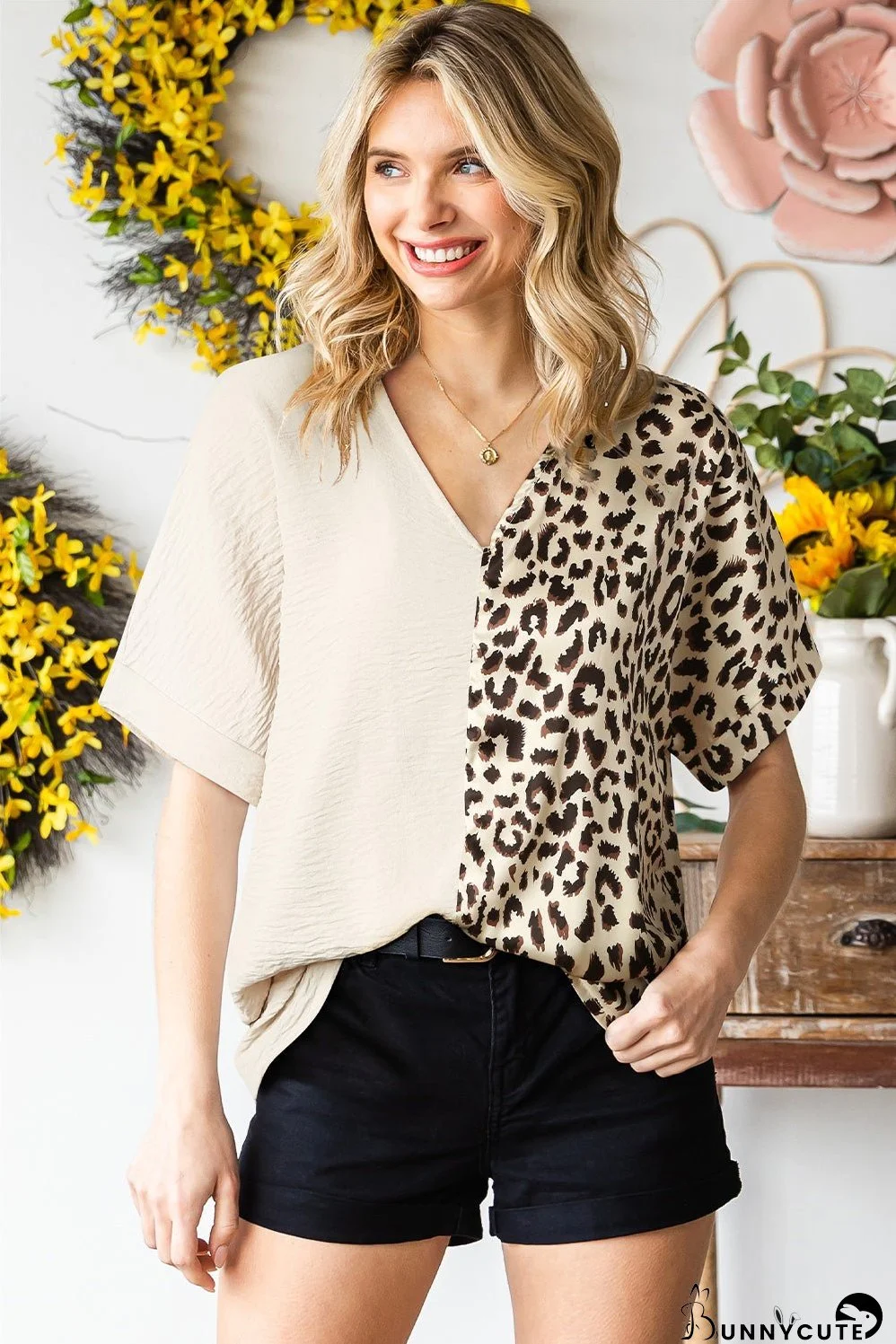 Elevate your style with our Leopard Stitching Button Long Sleeve Blouse! This unique top features a striking two-tone design: a classic solid (beige or white) paired with a chic leopard print. The flattering V-neck or collared button-down adds versatility, perfect for dressing up or down. The comfortable, soft fabric and flattering fit make this blouse a wardrobe essential. Make a statement and shop now!