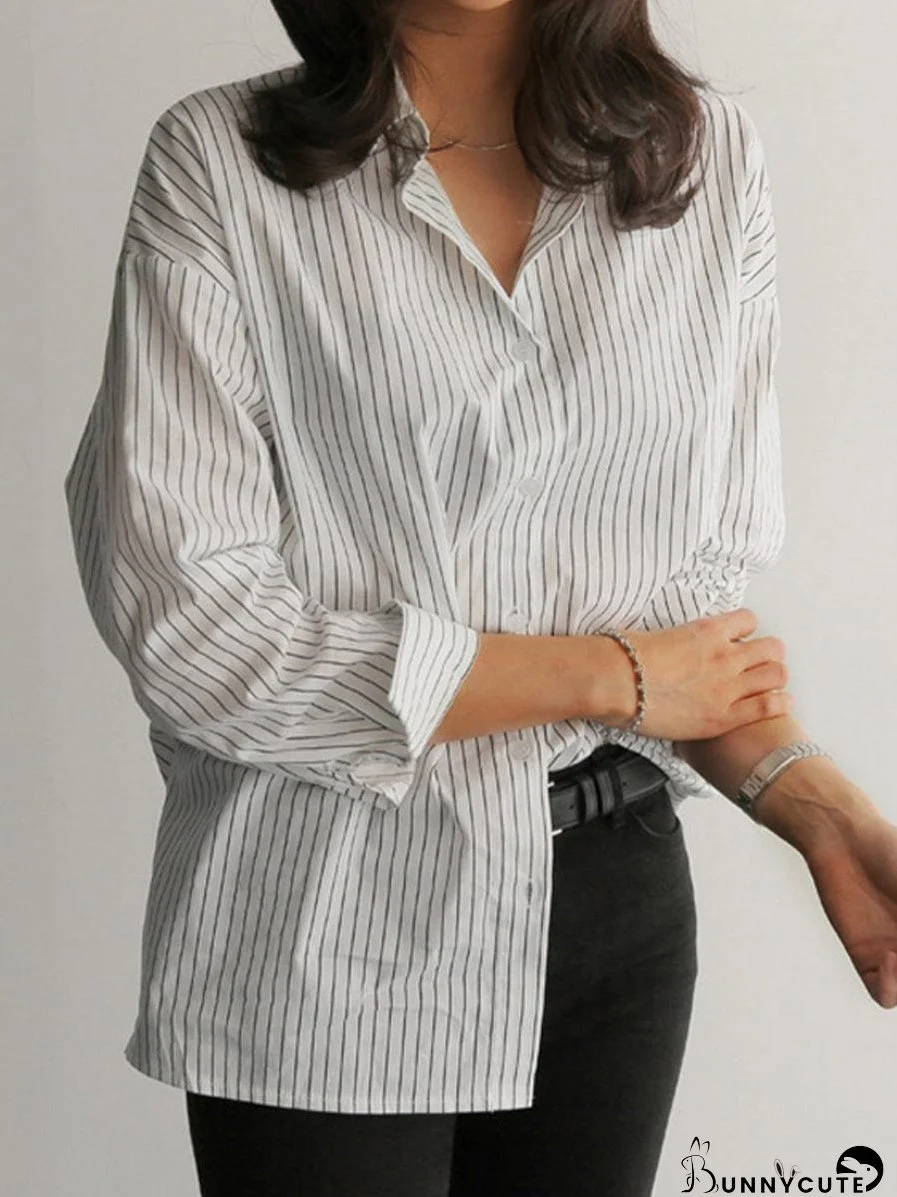 Effortlessly chic, this Loose Striped Oversized Long Sleeve Blouse elevates your style. Available in navy and white, its relaxed fit and classic stripes offer endless styling options. Dress it up or down – this versatile piece is a wardrobe staple.