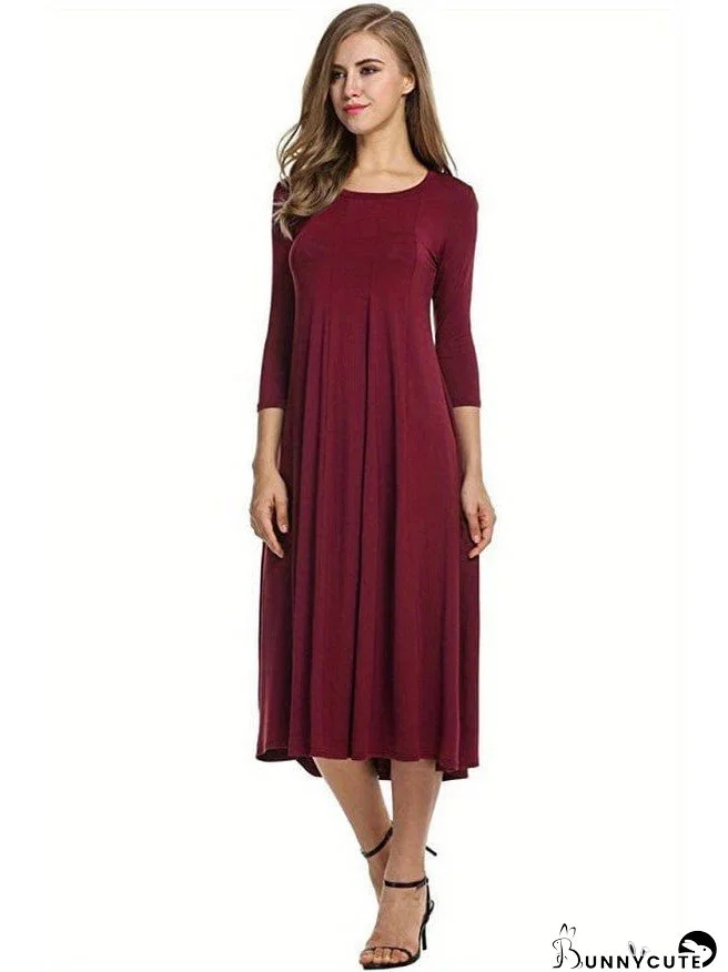 Effortlessly chic, this Casual Solid Crew Neck 3/4 Sleeve Midi Dress is a wardrobe staple. Available in versatile grey and black, the textured fabric (grey) and flattering A-line silhouette (black) create a look that's both comfortable and stylish. Perfect for any occasion, from casual outings to dressy events. Upgrade your style today!