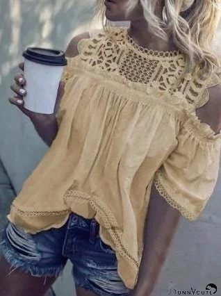 Elevate your style with our Round Neck Off Shoulder Cut-out Short Sleeve T-Shirt! This charming piece features a flattering smocked bodice, delicate ruffles, and an off-the-shoulder design that's perfect for warm weather. Available in versatile white, this top effortlessly transitions from day to night. The comfortable fabric and chic details make it a must-have for your wardrobe.