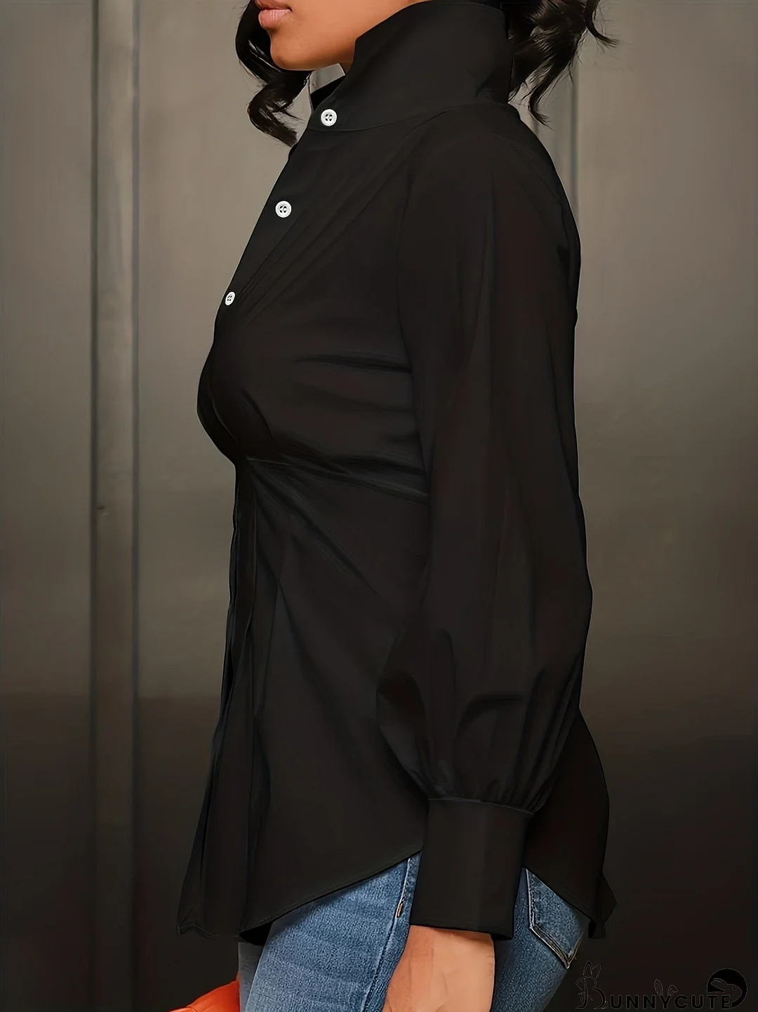 Elevate your style with this plus size casual blouse! Featuring a flattering nipped waist, lantern sleeves, and a classic turn-down collar, this solid button-up blouse is perfect for any occasion. Available in black, white, and green, it's crafted from a comfortable and breathable fabric. Update your wardrobe today!