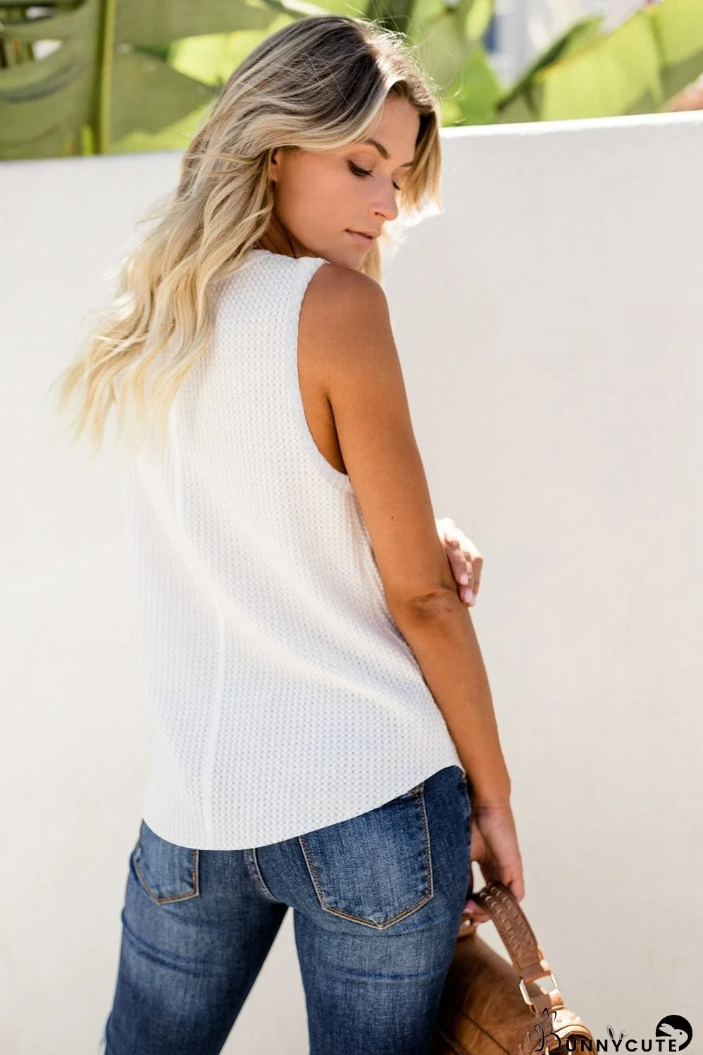 Elevate your style with our Solid Round Neck Sleeveless Top Vest. This versatile piece features a flattering waffle knit texture in classic white and beige. The simple, round neck and sleeveless design create a chic and effortless look, perfect for layering or wearing on its own. Soft, comfortable material ensures all-day wear. Upgrade your wardrobe today!
