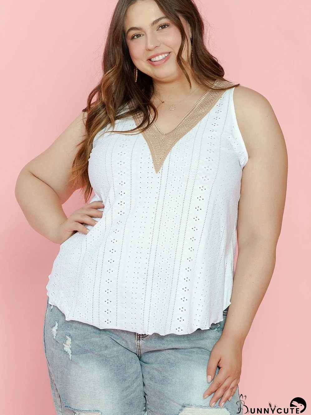 Imagine stepping into a formal setting wearing the stunning White Plus Size Guipure V Neck Eyelet Lace Tank Top. This elegant piece enhances your confidence and style, making it perfect for various sophisticated occasions. Here are three detailed scenarios where this tank top can truly shine: