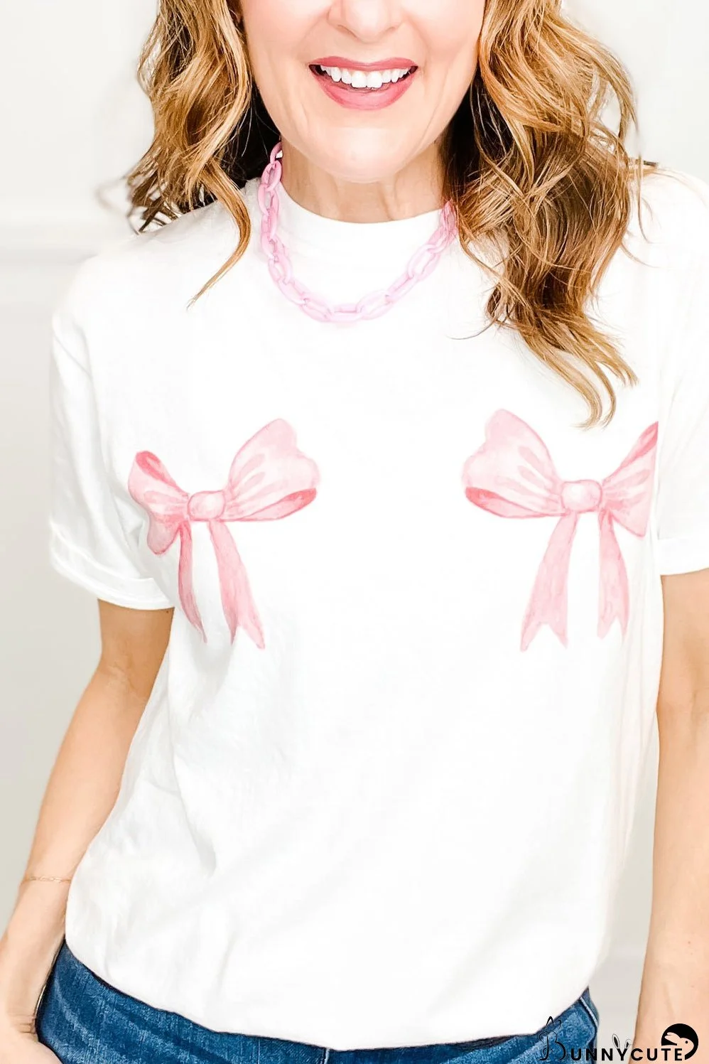 Dear Lover brings you the latest fashion trends at wholesale prices, ensuring that you stay stylish without breaking the bank. Elevate your casual collection with our White Sweet Bow Knot Print O Neck T-Shirt today!
