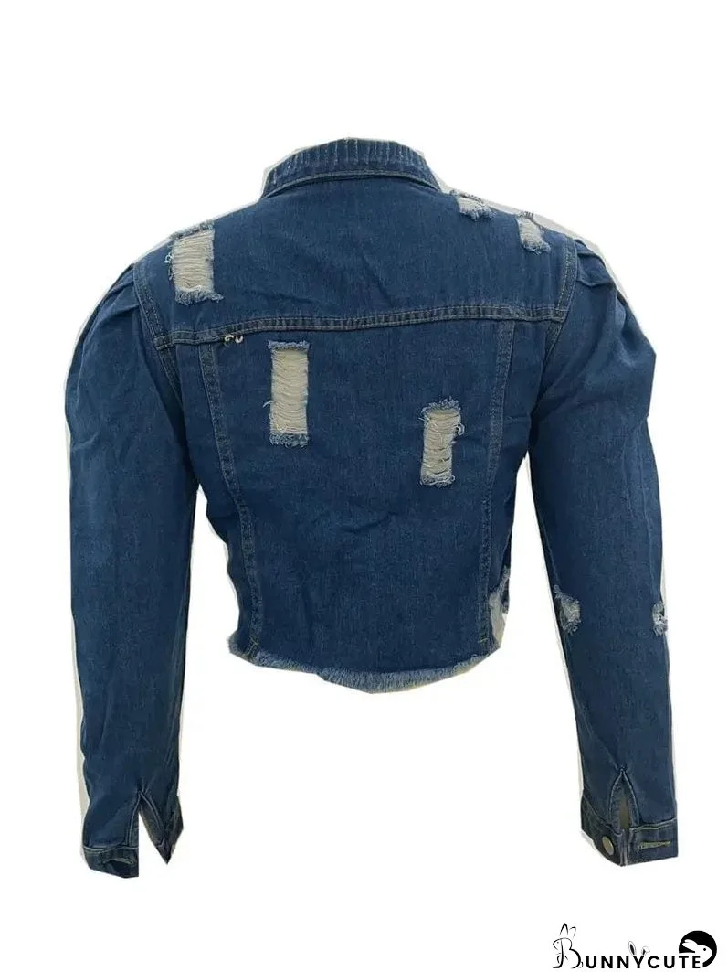 Elevate your style with our Ripped Raw Hem Puff Sleeve Pocket Cropped Denim Jacket! This light wash denim jacket features trendy puff sleeves, a raw hem, and stylish distressing. Its cropped length pairs perfectly with high-waisted jeans or dresses, adding a touch of edgy chic to any outfit. The pockets add practicality, and the light denim complements various styles. Update your wardrobe today!